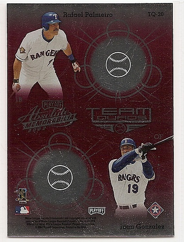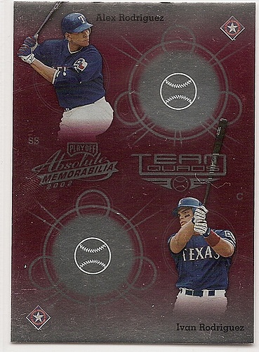 Will any player on this card make it into the hall of fame? We know Juan will not because he has borderline numbers when coupled with the sterioid allegation make it never going to happen. Palmeiro sort of "snuck" up to having hall of fame numbers, so the voters would be inclined to wait on him but due to the finger wagging coupled with the steroid test, he isn't going to be elected. Pudge and Arod are the more interesting cases. As the years go by, Canseco's book(s) gain more credibility. Pudge will suffer for being named in that book but I don't have a guess as to how it will affect him.