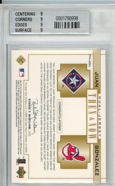 Name:	2001 Upper Deck Pros & Prospects Then & Now Jersey Gold #6 of 25 BGS 9.0 Back - Copy.jpg