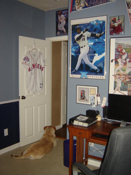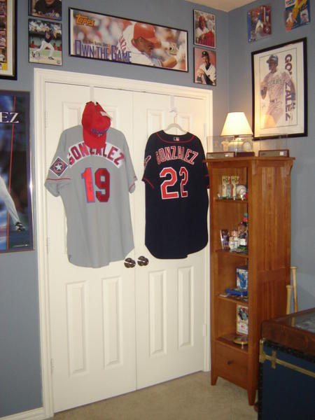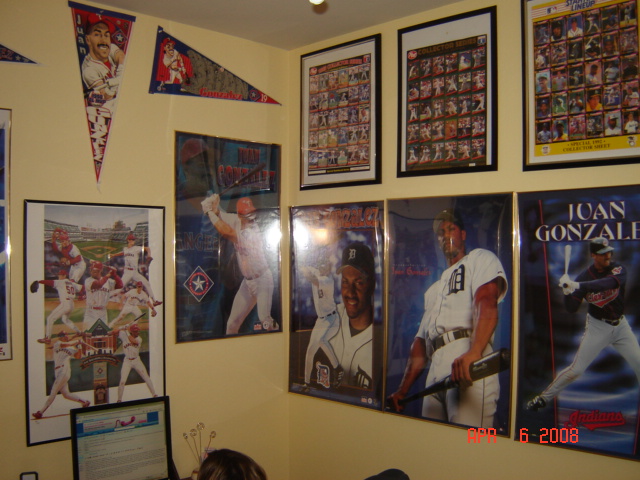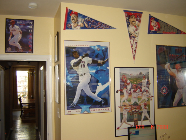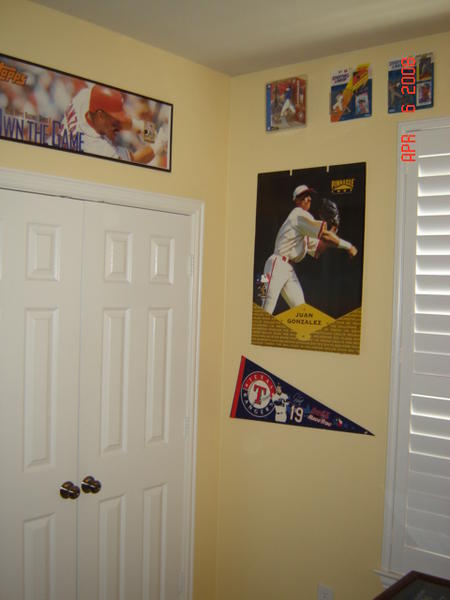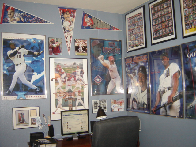 It is wall-to-wall Juan. Three of the walls are covered in posters, pennants, and SLUs. The fourth wall will be a large framed case where I can put all of my game used and autographed cards which are currently in screwdowns in boxes. It will hold about 500 cards and cover the entire wall. I will add a picture of it once my dad and I finish custom building it.