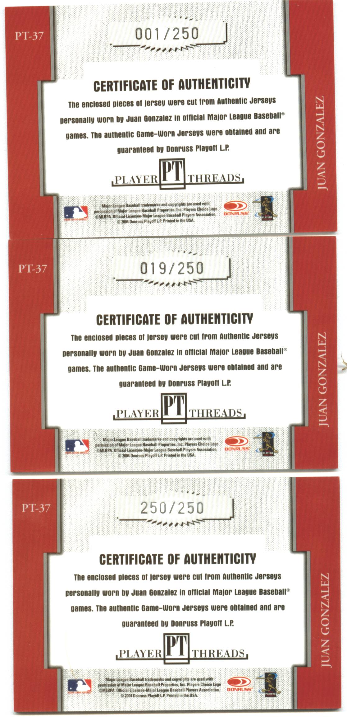Maybe someone can explain to me why that is so important. I might look at a card and say "neat, it is Juan's jersey number" or "hey, look at that, it is the first one" but I would never pay a premium for them or pursue them. In fact, I trade my cards with "Special" serial numbers and get a lot for 'em.