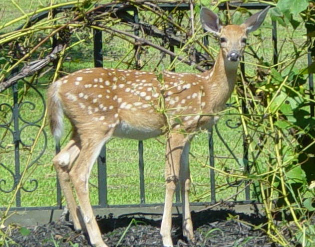 Have a grapevine in my back yard I planted some years back. Love to grap a few grapes while mowing the lawn. Well this year it was doing well up to a week ago. It was getting eaten by something and I finally caught her today.