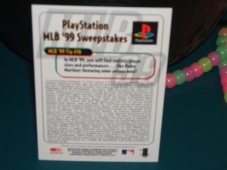 I was STILL entering my collection in and ran across this in my folder. It's a Donruss MLB '99 card Playstation Sweepstakes card. I didn't see it listed under the 99's or oddball. Am I overlooking or is this just 'out' there card. Thanks--Jerry