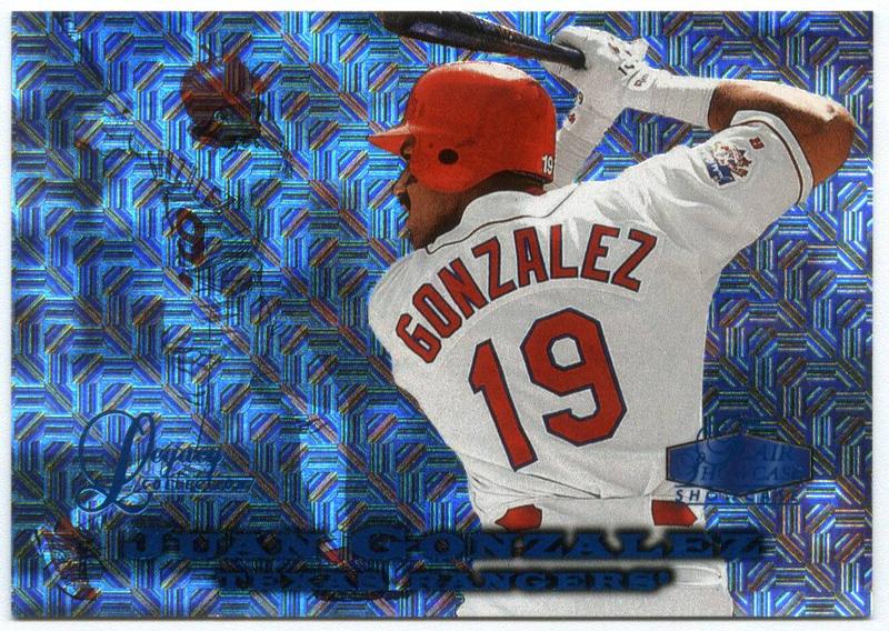 1st is a 1995 Panini Sticker # 83 with a back variation 2nd is a 1998 Flair Showcase Legacy Row 0 no name in blue foil over stats. |