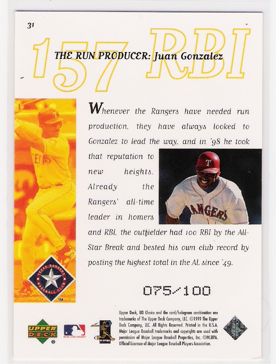 1999 UD Choice Prime Choice Reserve #31 1999 UD Encore F/X Gold #171 1999 Upper Deck Exclusives #242 1999 Upper Deck Wonder Years Triple |