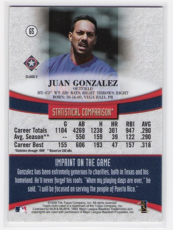 1999 UD Retro Distant Replay Level 2 1999 UD Retro Old School New School Level 2 1999 Topps Gold Label Class 1 Red Label 1999 Topps Gold Label Class 2 Red Label |