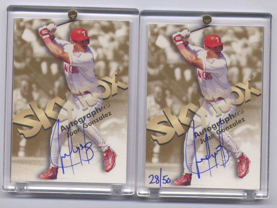 Dont get started on those Skybox cards! I bought a few of them trying to get the correct color ink versions. I don't have any extras anymore though. But I couldn't get any that wasn't blue! The only difference on the stupid cards was that one was numbered to 50 and the other wasn't.