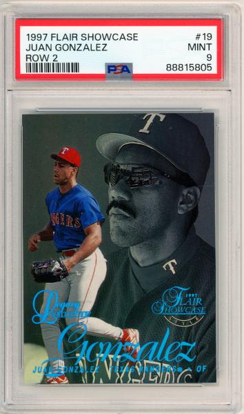 PSA mucked up on the row 2 card and did not properly ID the card. The roe 0 for the 97 and 98 Have a museum/refractor like finish on the front.
