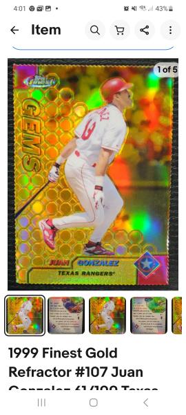 The other card is a 1999 Finest Gold Refractor, I love this set, I think the gold is so sexy. So the card arrives in a cards Saber II taped to a piece of cardboard. I've never seen that before, but the card was well protected. I pulled it out, got a brand new One Touch to put it in and it would not fit??? Seemed like the car was a millimeter or two too big. I thought maybe it was the One Touch, pulled another one out, it won't fit in that one either.