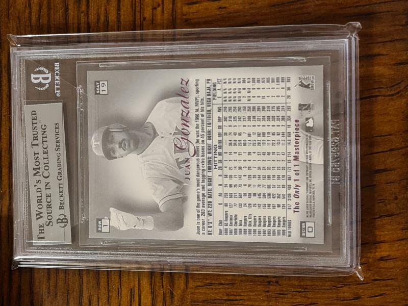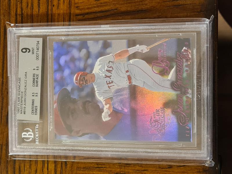 I need your help. I recently bought the biggest or most expensive Juan card in my collecting career, 1997 Flair Showcase Legacy Row 1 Masterpiece. I bought off of Myslabs, fir $3,900 plus fees. I received the card yesterday, Thursday the 5th of Sep. Once I got the card I scanned it, but the BGS label was very crooked. I tapped the card upside down and the label centered itself better. I was curious of when it was graded by BGS, so I typed in the serial number and it came up as "No record found". My heart dropped. Oh shit, is this a fake, a counterfeit card, a replacement card, a backdoor copy? Anyway, I reached out to a few folks online, they pointed me to this Instagram user Grade these cards. He said he will help me track down some facts about the card. I guess because some of the cards from this set have had other 1 of 1 copies come up, Beckett stopped grading them at some point. The card I bought is the same one pictured on the Juangone site B19, Row 1, BGS 9.0 serial number 0007140794. Does anyone of you also own this card? Or have you owned it before? It shows on the site that Rob owned the B19 Row one at one point and it left his possession or he sold it back in 2010? Thanks in advance for any help you all can provide. John |