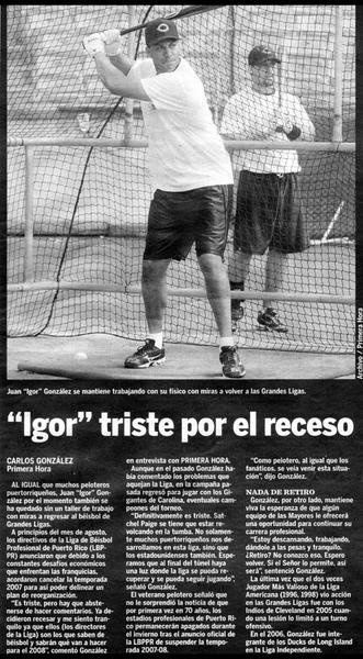 It is sad, but is better not to comment about it. They already decide to recess, and I feel alright since they (the league directors) are who know about the league and will know what to do for 2008 season. Gonzalez said in an interview with Primera Hora Newspaper.