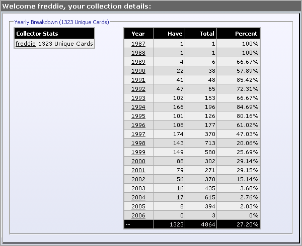 When you go to the collections, choose a year and you should see an "Edit" link next to where it says how many cards were found, example: