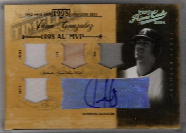 Well, I decided that I couldn't live without one nice 1/1 Juan, and I know I overpaid a little for this, so I have to show it off: 2004 Prime Cuts II Timeline Signature Material Quad.