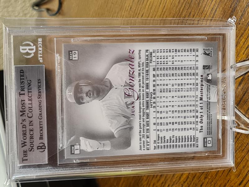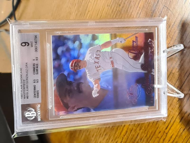 I need your help. I recently bought the biggest or most expensive Juan card in my collecting career, 1997 Flair Showcase Legacy Row 1 Masterpiece. I bought off of Myslabs, fir $3,900 plus fees. I received the card yesterday, Thursday the 5th of Sep. Once I got the card I scanned it, but the BGS label was very crooked. I tapped the card upside down and the label centered itself better. I was curious of when it was graded by BGS, so I typed in the serial number and it came up as "No record found". My heart dropped. Oh shit, is this a fake, a counterfeit card, a replacement card, a backdoor copy? Anyway, I reached out to a few folks online, they pointed me to this Instagram user Grade these cards. He said he will help me track down some facts about the card. I guess because some of the cards from this set have had other 1 of 1 copies come up, Beckett stopped grading them at some point. The card I bought is the same one pictured on the Juangone site B19, Row 1, BGS 9.0 serial number 0007140794. Does anyone of you also own this card? Or have you owned it before? It shows on the site that Rob owned the B19 Row one at one point and it left his possession or he sold it back in 2010? Thanks in advance for any help you all can provide. John |