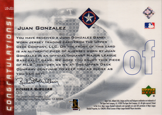 2- JGO 2002 Upper Deck Ballpark Idols Uniform Sluggers Jerseys White Jersey Back.