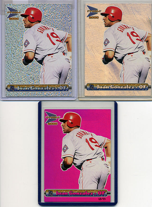 Two different silver and one purple that is SN 68/99. Time to google for the answers. We can start out including scans of cards in the list with these. I'll try to work on that tomorrow. You have print runs on all of your 2000 prism cards besides one and yet both of my silver cards lack serial numbers.