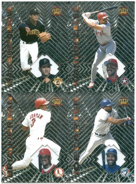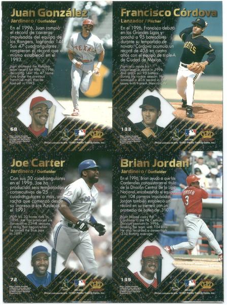 1997 Pacific Prisms Platinum 4 card panel Juan Gonzalez, Franciso Cordova, Joe Carter, Brian Jordan