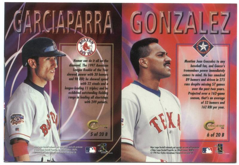 1998 Circa Thunder Boss 2 Card Panel Juan Gonzalez, Nomar Garciaparra