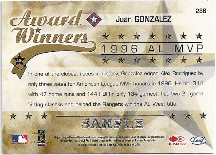 2002 Leaf Rookies and Stars Sample "Factory" #286 |
