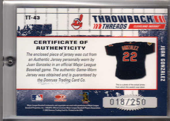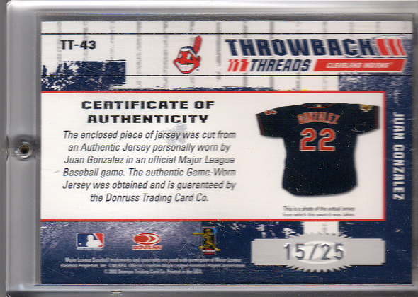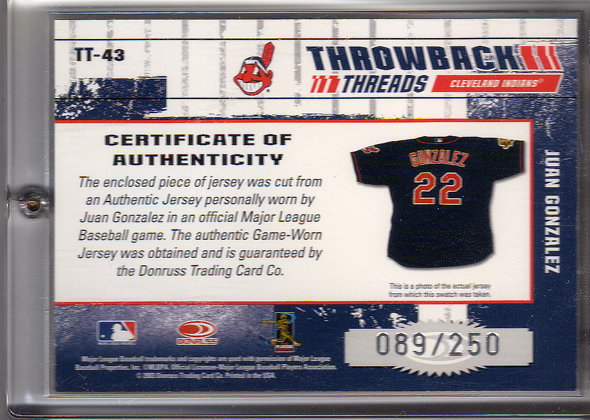 1- 43 2003 Donruss Elite Throwback Threads 089/250 Front. 2- 43 2003 Donruss Elite Throwback Threads 089/250 Back. 3- 43 2003 Donruss Elite Throwback Threads 018/250 Front. 4- 43 2003 Donruss Elite Throwback Threads 018/250 Back. 5- 43 2003 Donruss Elite Throwback Threads 15/25 Front. 6- 43 2003 Donruss Elite Throwback Threads 15/25 Back. |