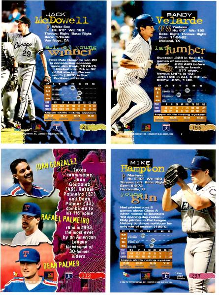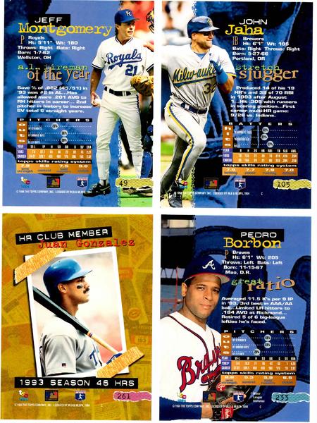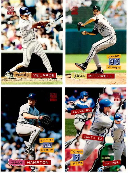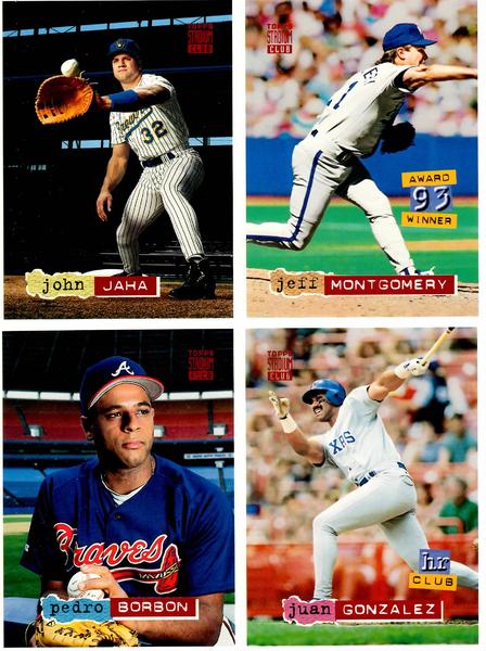 2 different 1994 Stadium Club 4 Card Uncut Sheets
