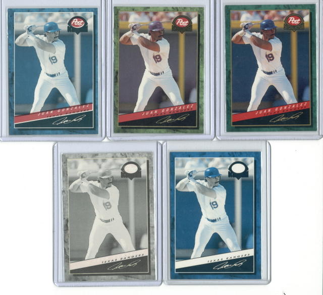 I scanned them all together to illustrate the differences. I included the normal 1994 Post to help make this point. The other 4 are each a different step in the printing process. Starting with a black and white, all the way to full color. The backs are all normal and full color. I can scan them all individually. I'm not sure how to list these, the black and white one can be listed as 1994 Post - Black Only Front, I'm not sure about the other 3. |