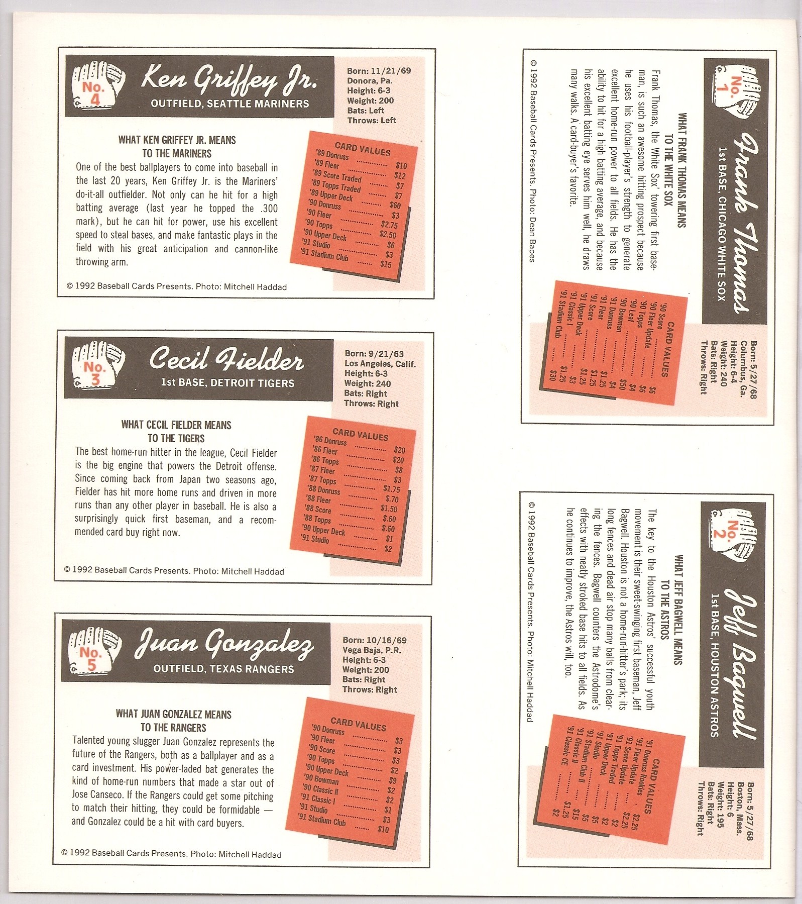 November 1992 Beckett Focus On Future Stars 1993 Hispanics In The Major Leagues 1993 Lonestar Classic Rangers Vs. Astros 1993 Rangers Program "Texas Power Company" |