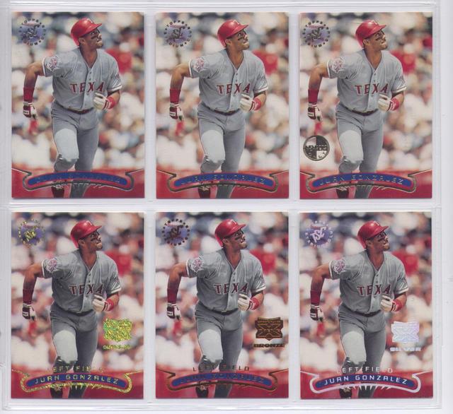 While loading 96 pic I noticed that I have 6 Stadium Club #9. It seems they made a gold foil version as well as a silver. First two cards on top left.