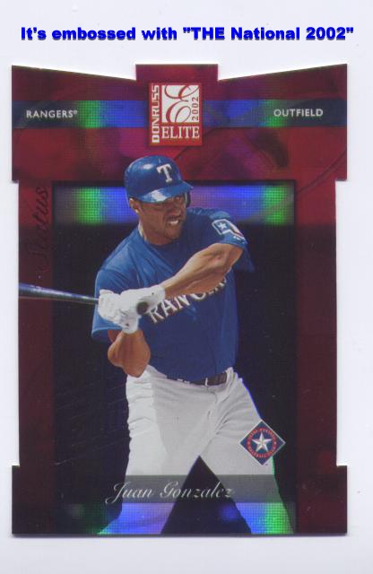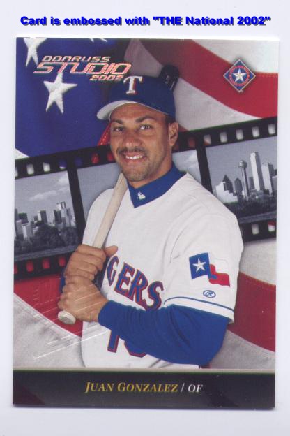 I sure hope additions aren't alot a trouble for Freddie. He has done well adding them when asked but it seems to be an endless task. Since I'm closing in on 80% of all years in the 90's I'm starting to purchase a little heavy in the next decade. I see that card manufactures made cards just for shows and not like 2000 and before when they just stamped an existing card. I have several I'll scan and add to this string. I might send a bunch out to be graded as I think that is how they get added to their lists. As not all the convention cards are listed in Beckett for Juan.