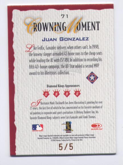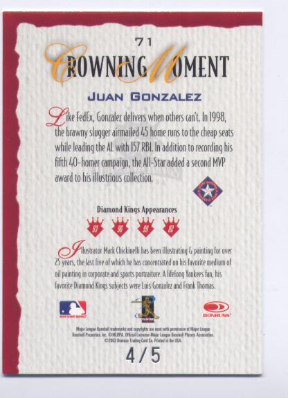 2002 #71 Diamond King Bronze Foil Chicago National /5 Kinda cool, even the /5 is in bronze. |