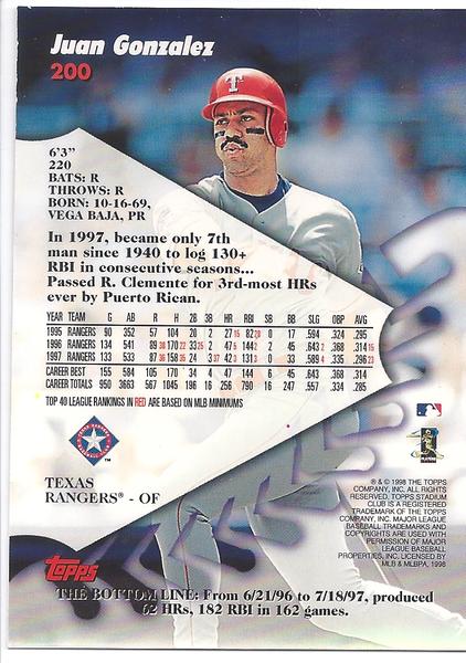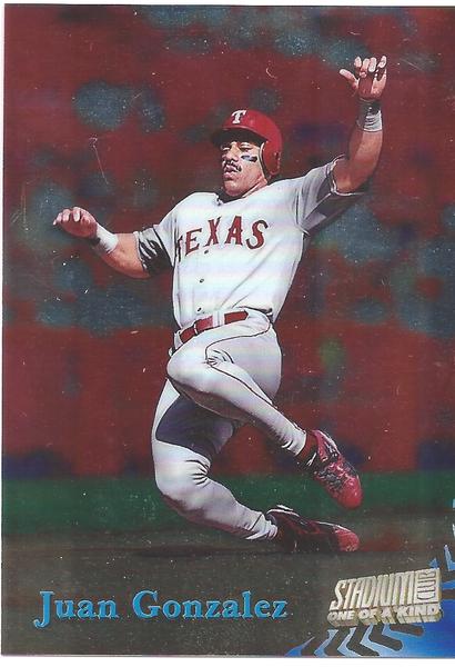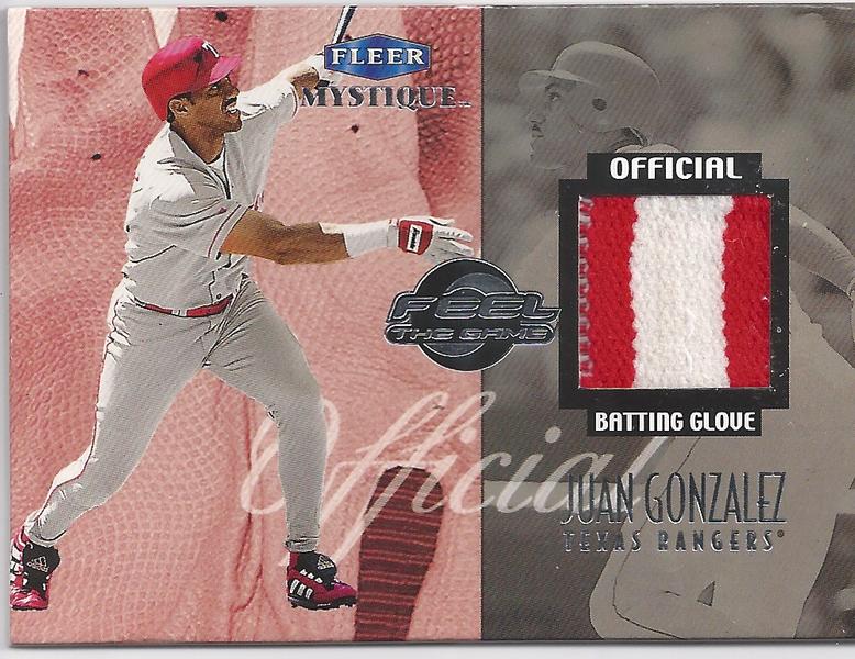 1998 Stadium Club ONE OF A KIND no serial number to the list. Also this one. 1999 Fleer Mystique Feel the Game #3 J.Gonzalez Btg.Glove/415 NON SERIAL NUMBERED Thank,Rob. Last edited by nosterbor; 09-07-2013 at 06:15 AM. |