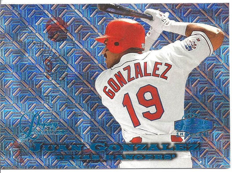 1998 Flair Showcase Legacy Collection Row 0 #44 Juan Gonzalez/100 Replacement card./Oversize proof. Thank you. Rob.