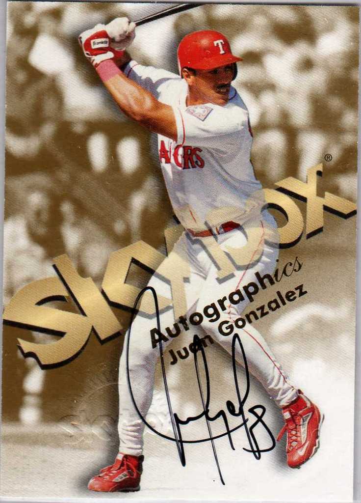 I have three versions of the Autographics card for Jimmy Smith: black ink, blue ink numbered to 50, and un-numbered blue ink. I have heard that the un-numbered blue ink cards were unused replacement cards that Fleer sold after its bankruptcy. There seem to be too many un-numbered blue ink cards of Juan for that to be entirely the case, but it wouldn't surprise me if all three versions do exist.