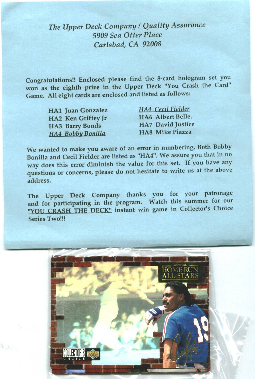 I have that but addressed to my sister as she got them for me as a gift. I also have many other packages like that, the most expensive and best looking is the Pinnacle Home run Club box that I got in order to get the Juan card. (That box cost me like $50 in 93) Juan was card 1 in that as well. I kept them for sentimental reasons I think more so then as collector items. They were not put on my list, and I really forgot about them till Rob brought it up a few weeks back.