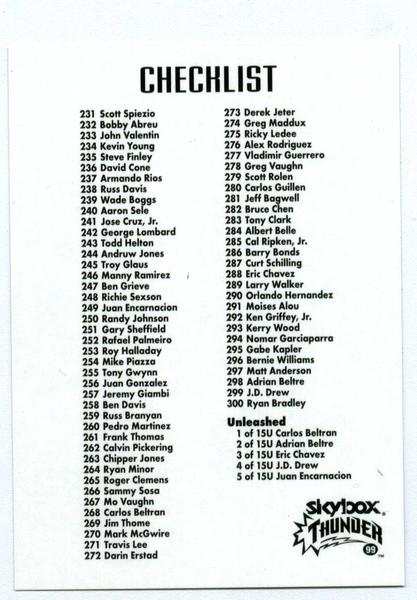 i found the 1994 collectors choice home run all star set redemption card! it is quite rare,they all got pitched after the expertion date of 6-30-94. also a nice 1999 circa thunder check list with Juans name on it 4 times can it be added? if not i am glad i have them!