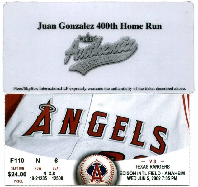 this is a 2003 Fleer Authentix box topper 400th home run ticket please add to oddball list. thank you , Rob.
