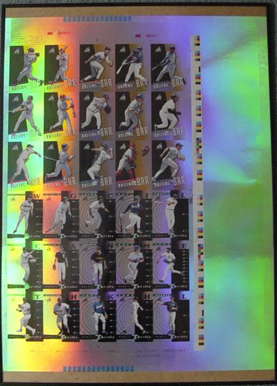Here's a pretty cool item that my uncle picked up for me at a yard show in Odessa, TX a few years back. It's a 1998 Zenith Raising the Bar/Rookie Thrills uncut insert sheet.
