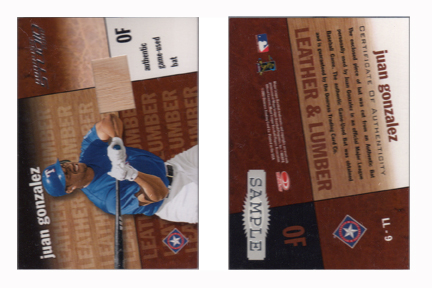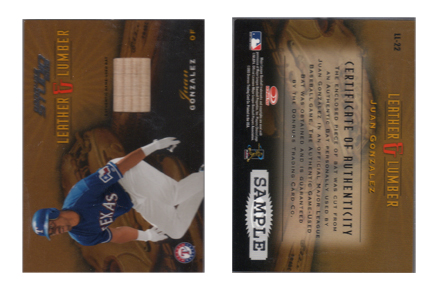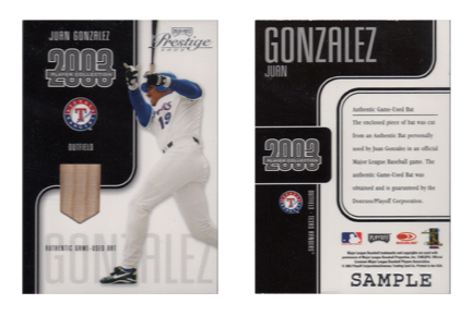 2- #22 2003 Studio Leather and Lumber Sample 1/1 3- #30 2003 Absolute Memorabilia Player Collection Sample 1/1 4- #30 2003 Playoff Prestige Player Collection Sample 1/1 |