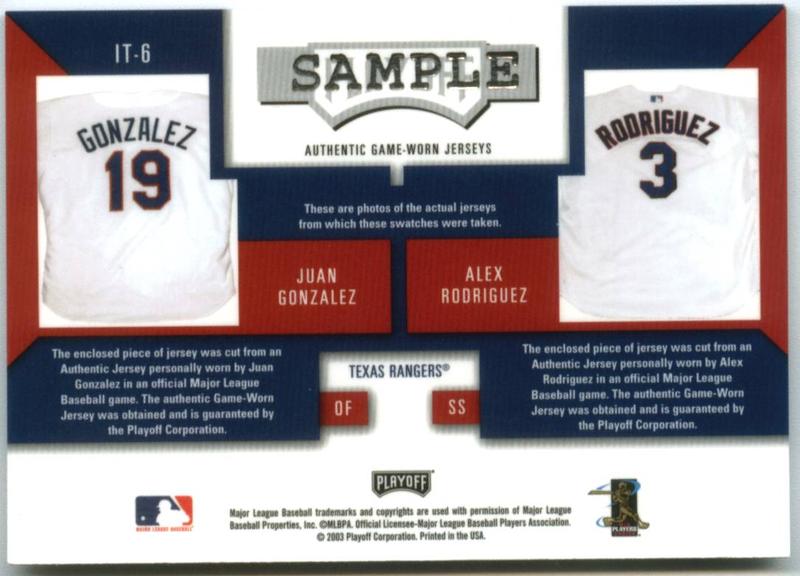 2003 Playoff Prestige Infield/Outfield Tandems Jersey SAMPLE