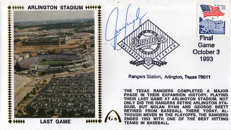 Oddball 1993 Arlington Stadium Last Game Autographed Cachet.