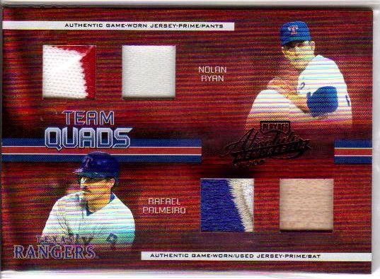 Texas Rangers Retro 2- #15 2005 Absolute Memorabilia Team Quads Swatch Double Spectrum Prime Black Back. Texas Rangers Retro |