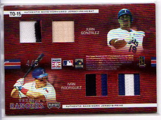 2002 Fleer Hot Prospects MLB Red Hot Tandems #JGRP J.Gonzalez Jsy/R.Palmeiro Jsy/10 ok who has one and who does not! http://juangone.com/pictures.php?cardid=3324 Last edited by nosterbor; 01-03-2009 at 05:20 PM. Reason: more |